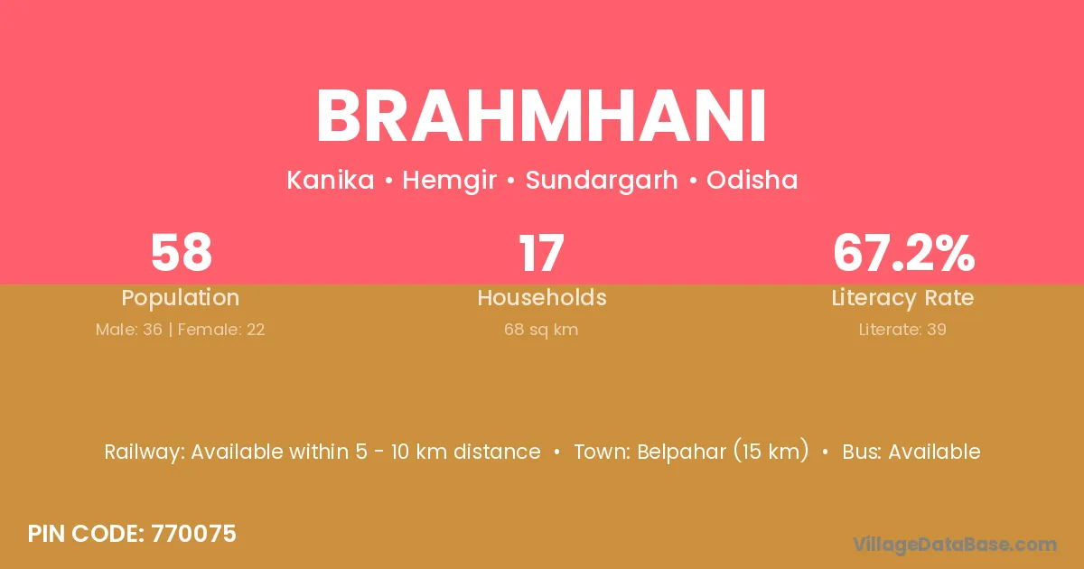 Belpahar (15 km) is the nearest town to Brahmhani village for major economic activities and is located approximately 15 km away.