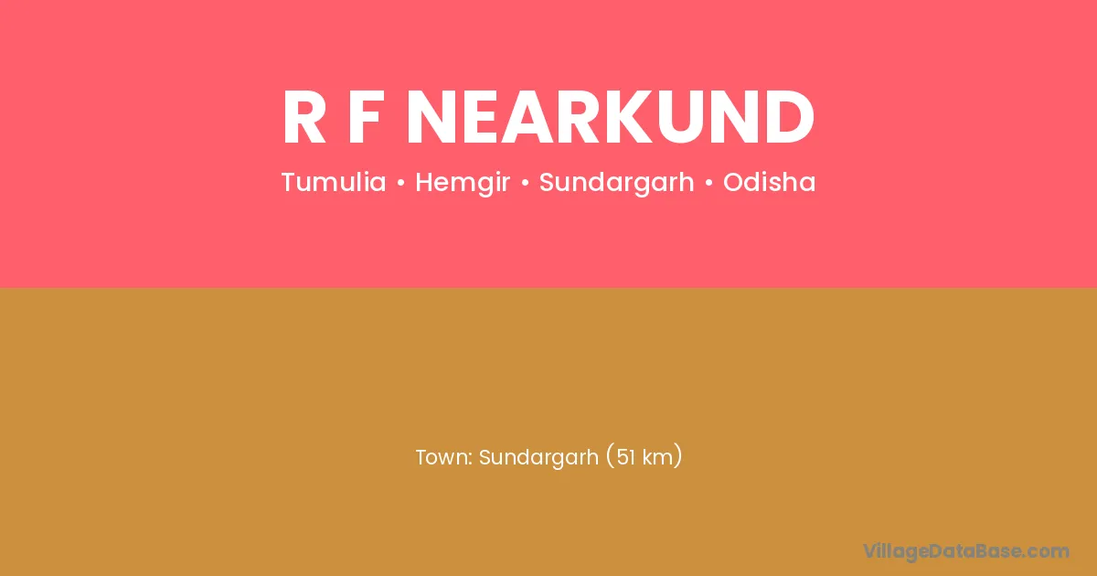 Sundargarh (51 km) is the nearest town to R F Nearkund village for major economic activities and is located approximately 51 km away.