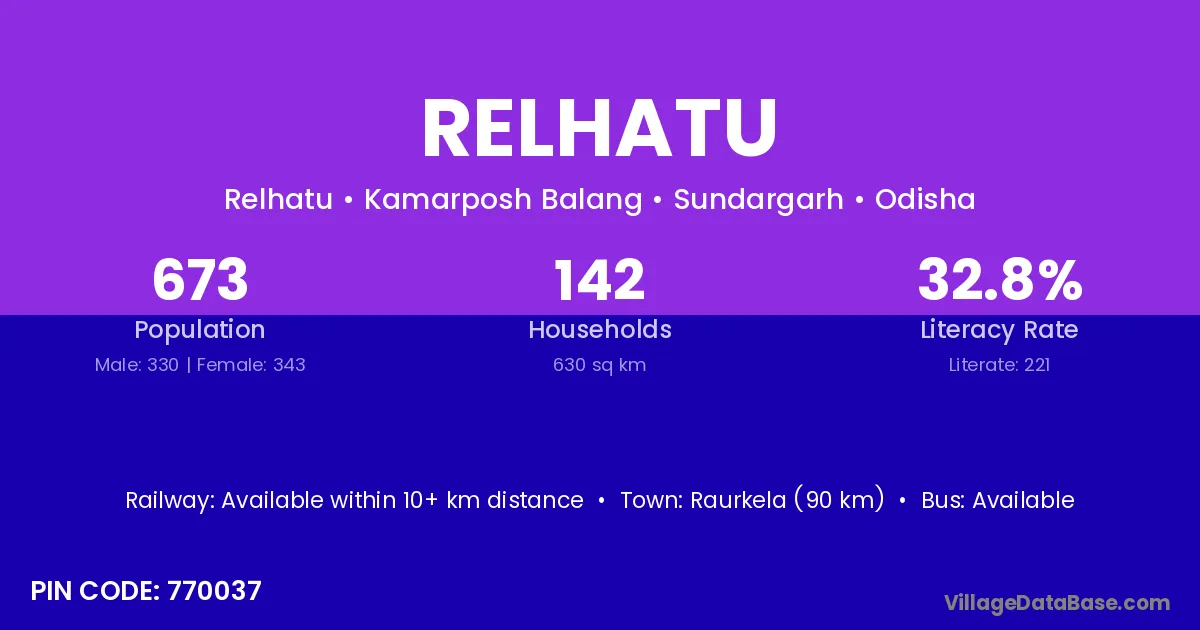 Raurkela (90 km) is the nearest town to Relhatu village for major economic activities and is located approximately 90 km away.