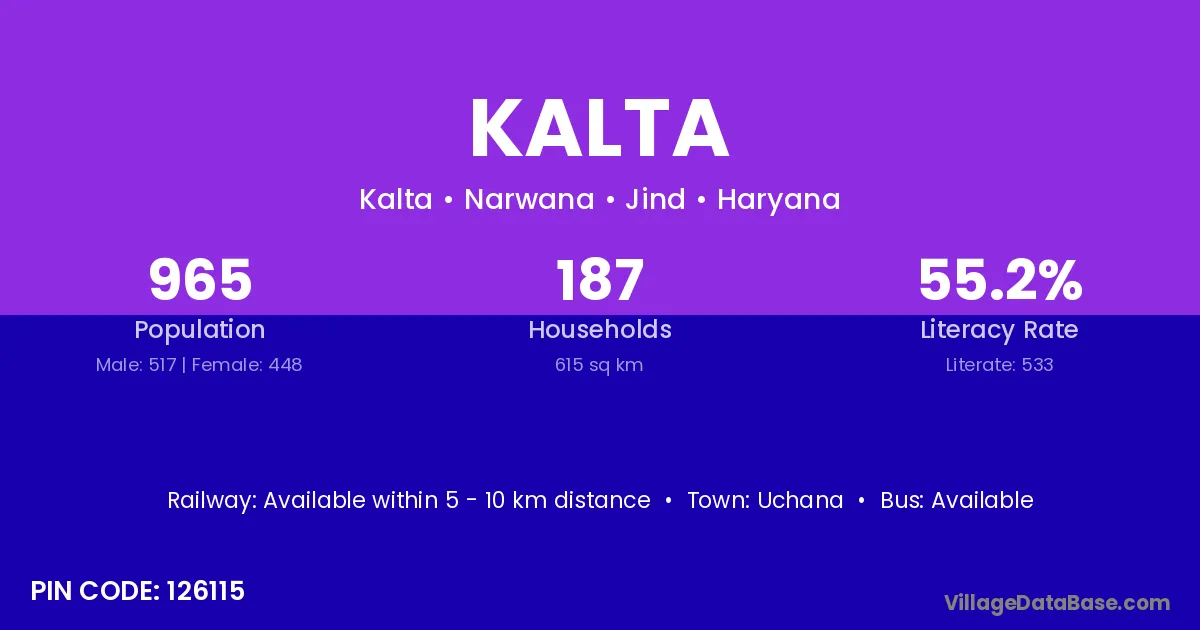 Kalta village has a total population of 2,532 people, of which 1,380 are males and 1,152 are females.