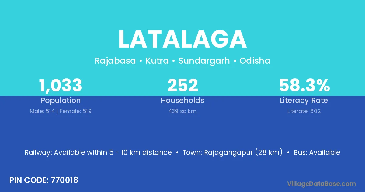 Rajagangapur (28 km) is the nearest town to Latalaga village for major economic activities and is located approximately 28 km away.