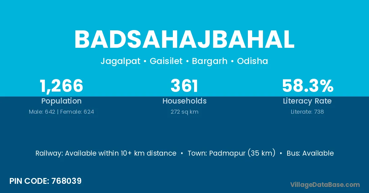 Raurkela (60 km) is the nearest town to Badsahajbahal village for major economic activities and is located approximately 60 km away.