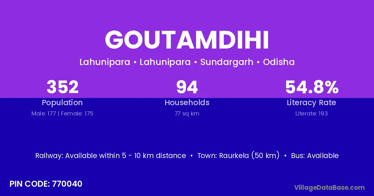 Raurkela (50 km) is the nearest town to Goutamdihi village for major economic activities and is located approximately 50 km away.
