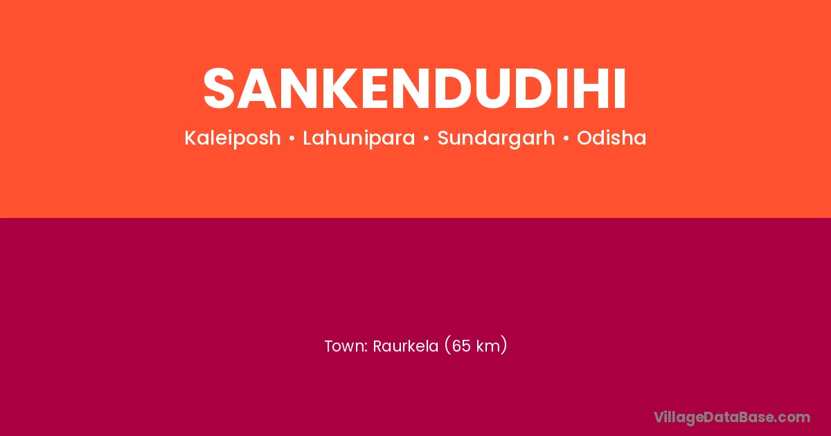 Raurkela (65 km) is the nearest town to Sankendudihi village for major economic activities and is located approximately 65 km away.