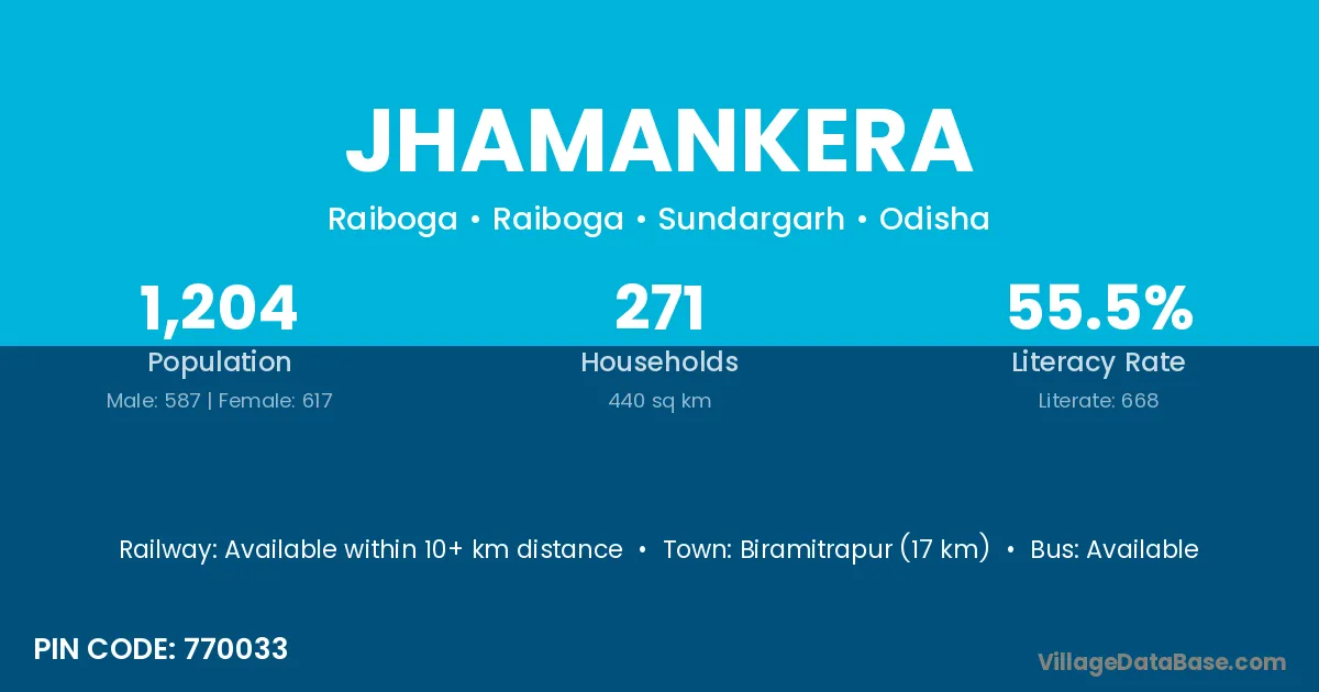 Biramitrapur (17 km) is the nearest town to Jhamankera village for major economic activities and is located approximately 17 km away.