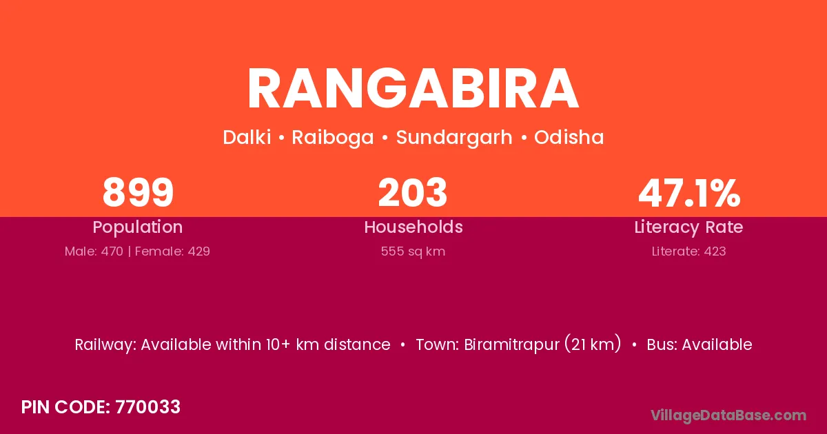 Biramitrapur (21 km) is the nearest town to Rangabira village for major economic activities and is located approximately 21 km away.