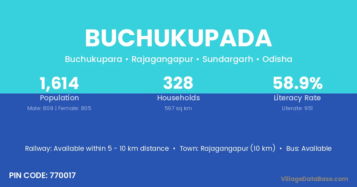 Rajagangapur (10 km) is the nearest town to Buchukupada village for major economic activities and is located approximately 10 km away.