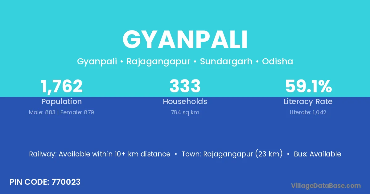 Rajagangapur (23 km) is the nearest town to Gyanpali village for major economic activities and is located approximately 23 km away.