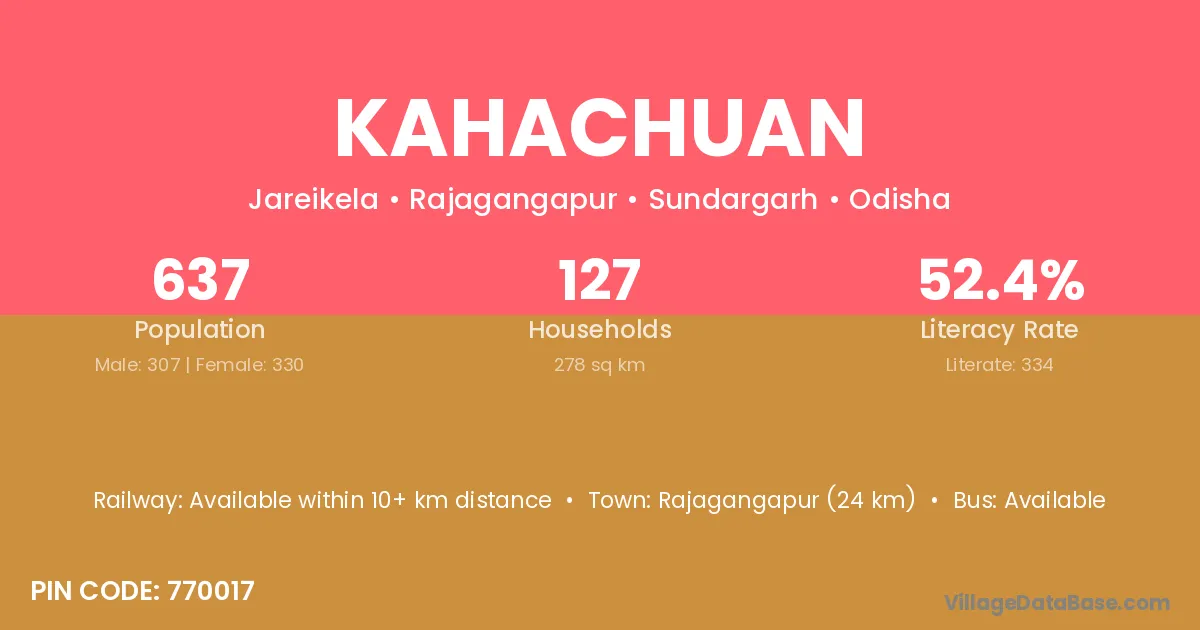 Rajagangapur (24 km) is the nearest town to Kahachuan village for major economic activities and is located approximately 24 km away.