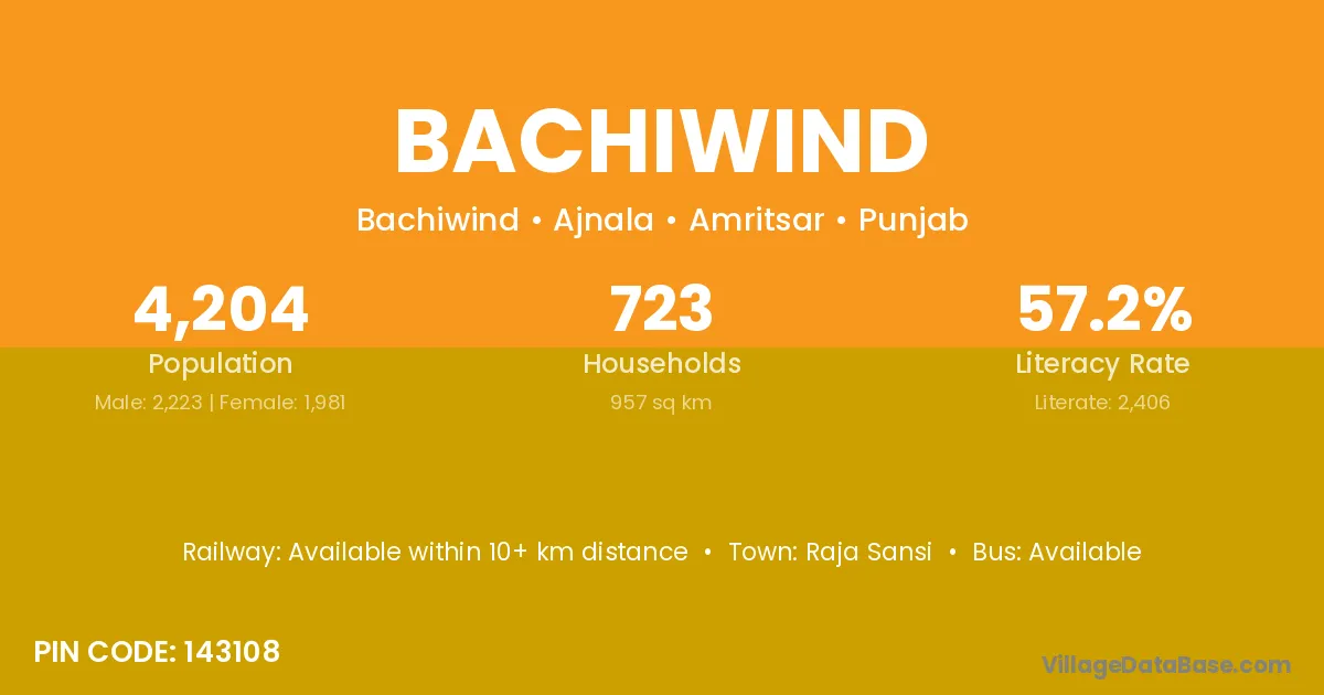 According to Census 2011 information, the village code of Bachiwind village is 143108.