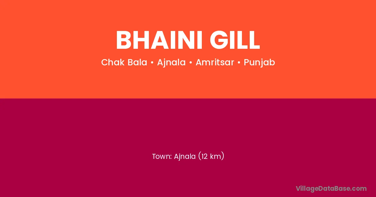 Bhaini Gill village is located in the Ajnala Tehsil of the Amritsar district in Punjab .