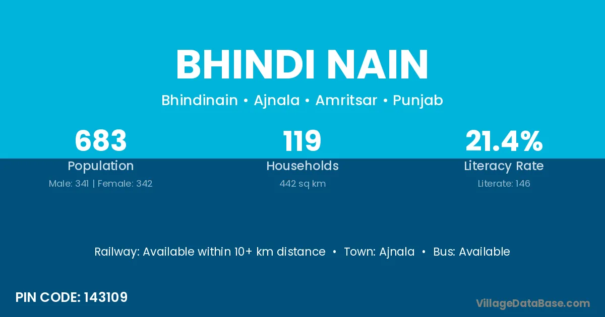Ajnala is the nearest town to Bhindi Nain village for major economic activities
