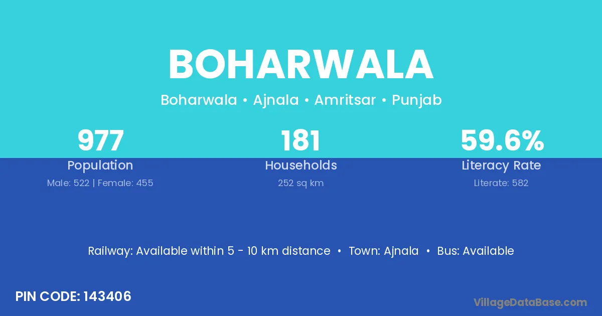 Ajnala is the nearest town to Boharwala village for major economic activities