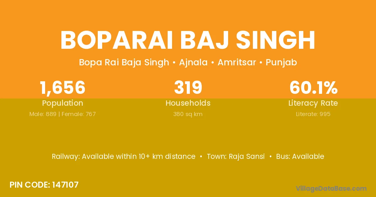 Raja Sansi is the nearest town to Boparai Baj Singh village for major economic activities
