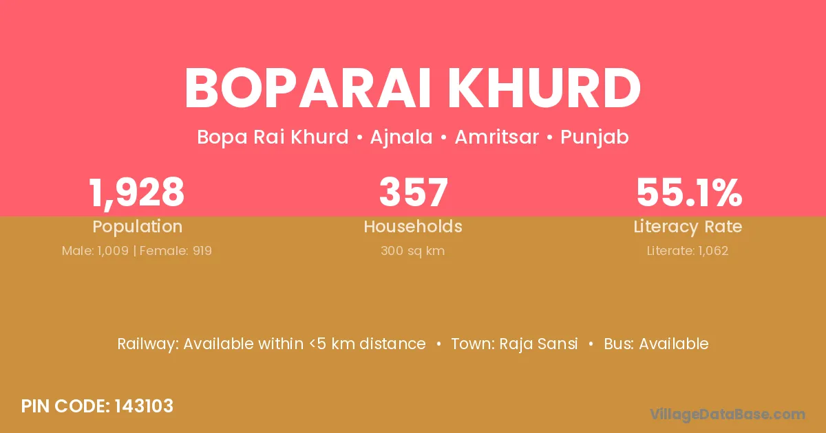 Raja Sansi is the nearest town to Boparai Khurd village for major economic activities