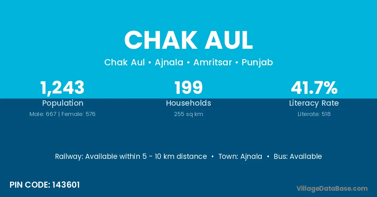 Ajnala is the nearest town to Chak Aul village for major economic activities
