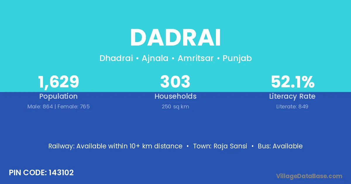 Raja Sansi is the nearest town to Dadrai village for major economic activities