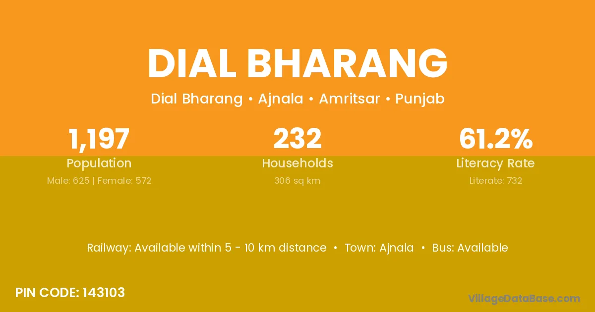 Ajnala is the nearest town to Dial Bharang village for major economic activities