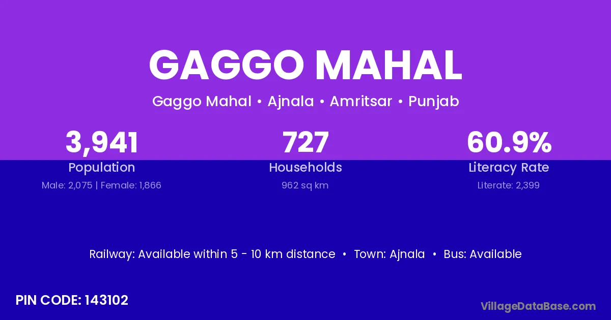 Ajnala is the nearest town to Gaggo Mahal village for major economic activities