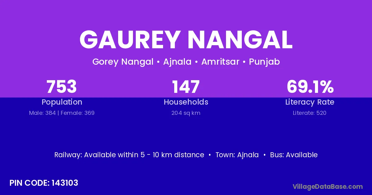 Ajnala is the nearest town to Gaurey Nangal village for major economic activities