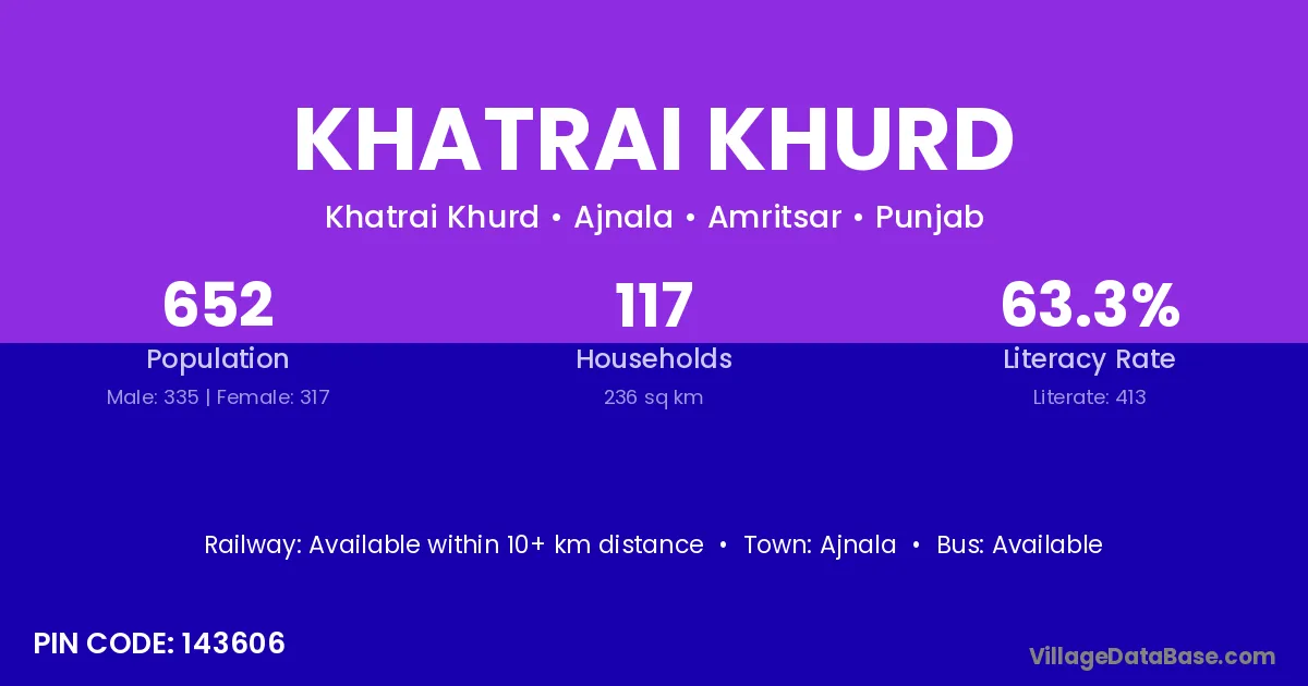 According to Census 2011 information, the village code of Khatrai Khurd village is 143606.