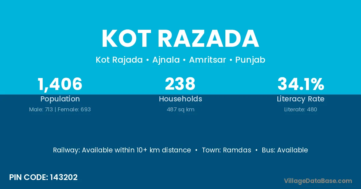 Ramdas is the nearest town to Kot Razada village for major economic activities