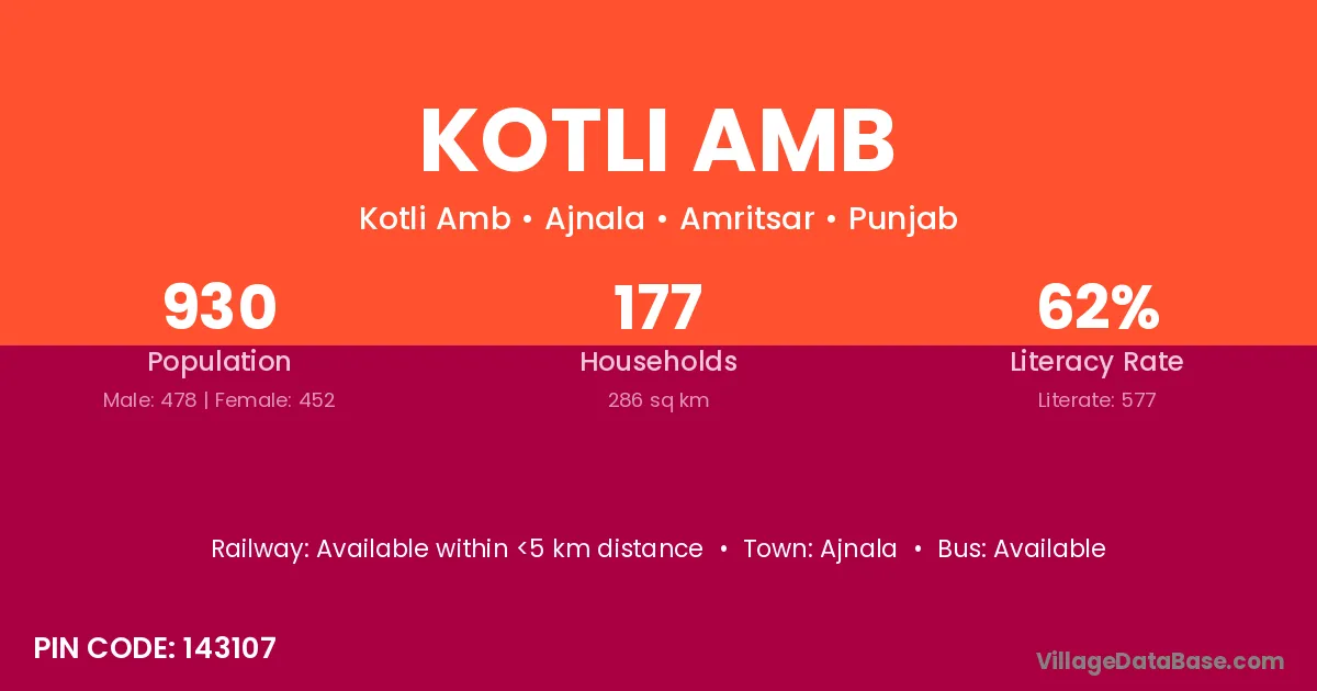 Ajnala is the nearest town to Kotli Amb village for major economic activities