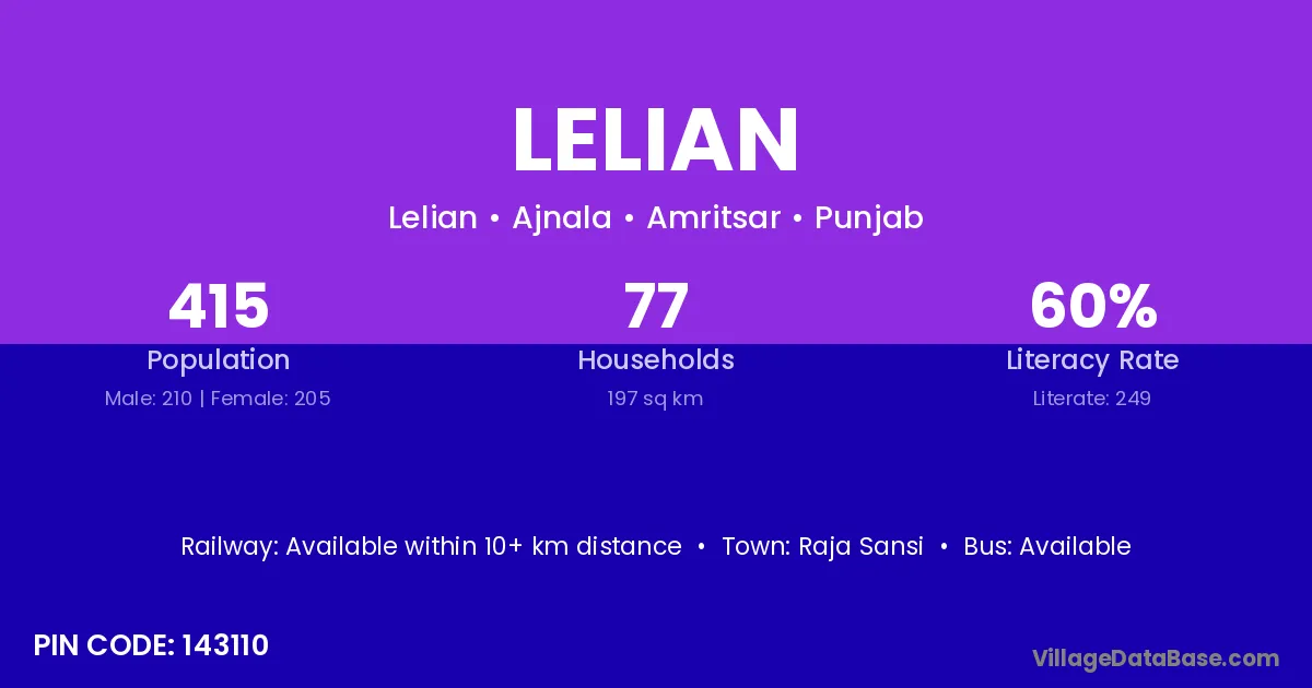 Raja Sansi is the nearest town to Lelian village for major economic activities