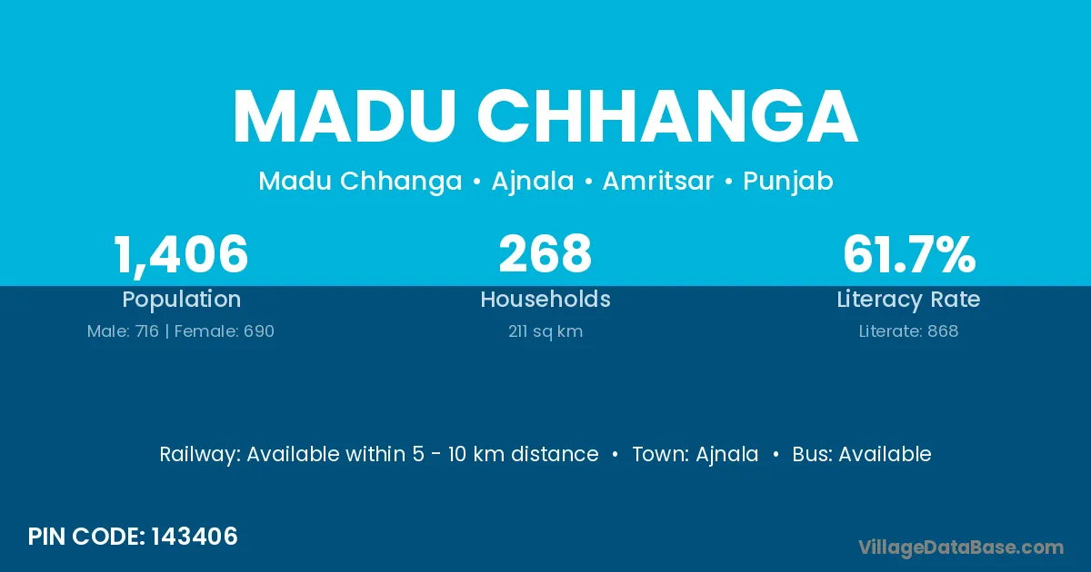 Ajnala is the nearest town to Madu Chhanga village for major economic activities