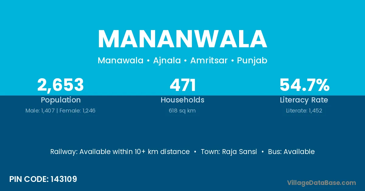 Raja Sansi is the nearest town to Mananwala village for major economic activities