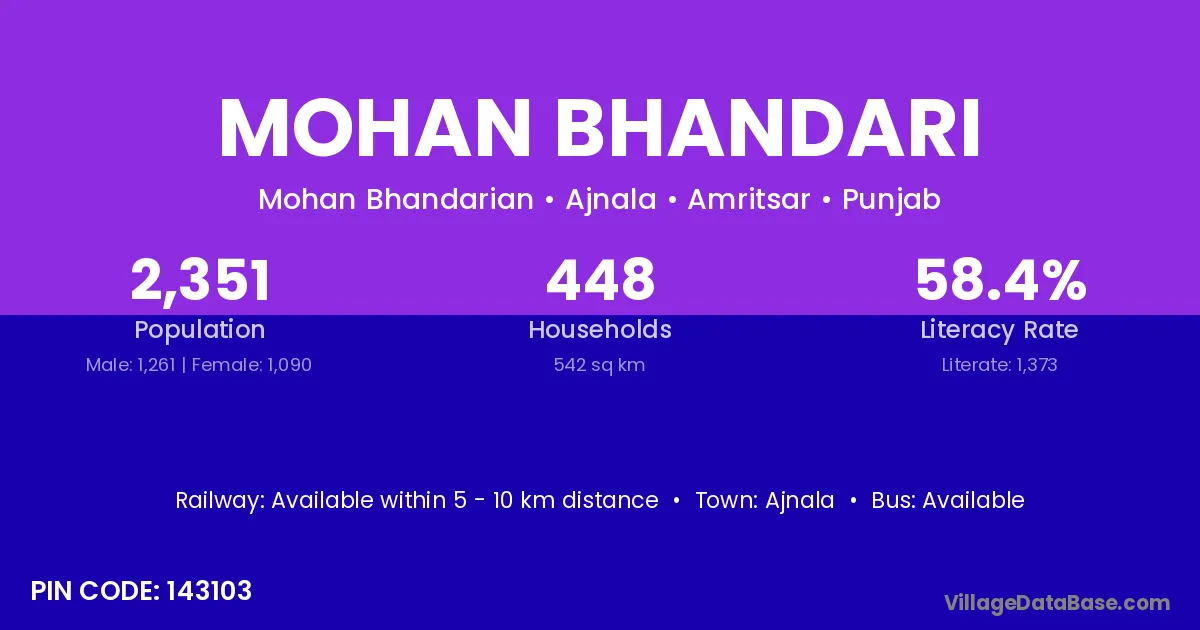 Ajnala is the nearest town to Mohan Bhandari village for major economic activities