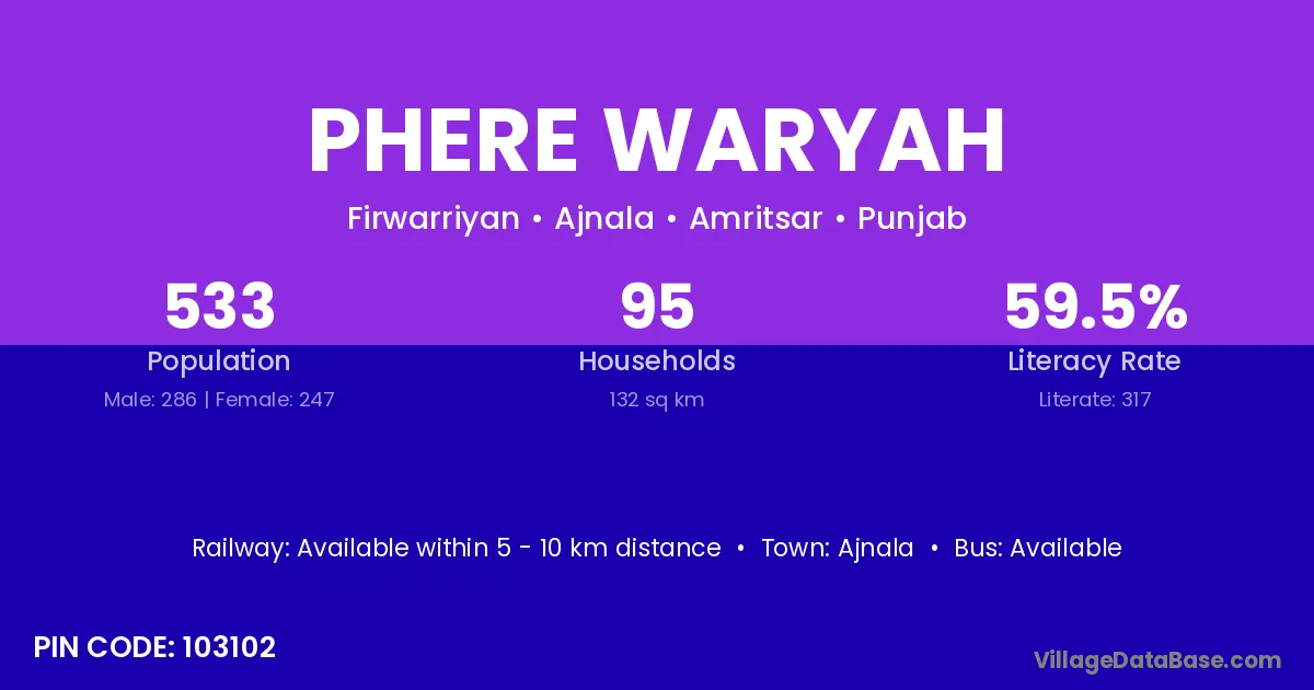 According to Census 2011 information, the village code of Phere Waryah village is 103102.