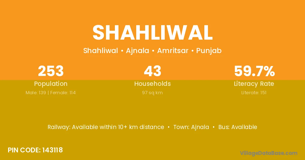 Ajnala is the nearest town to Shahliwal village for major economic activities