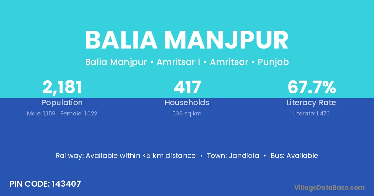 Jandiala is the nearest town to Balia Manjpur village for major economic activities