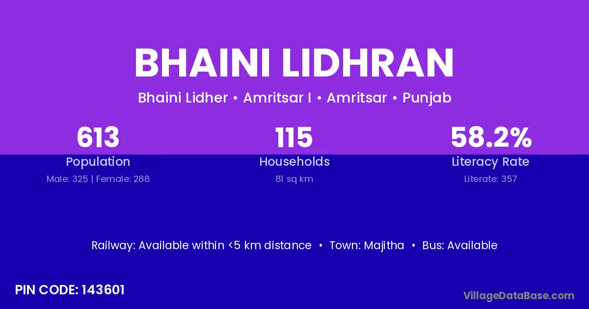 Majitha is the nearest town to Bhaini Lidhran village for major economic activities