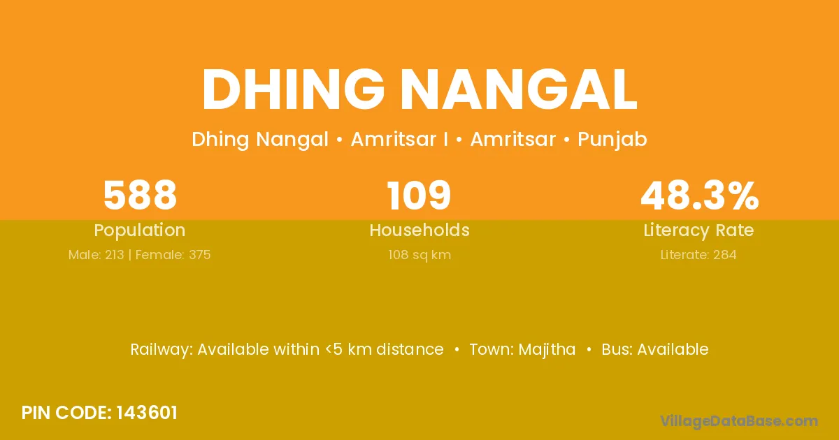 Majitha is the nearest town to Dhing Nangal village for major economic activities