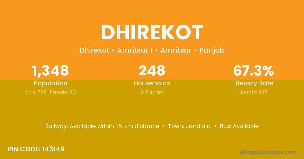 Jandiala is the nearest town to Dhirekot village for major economic activities