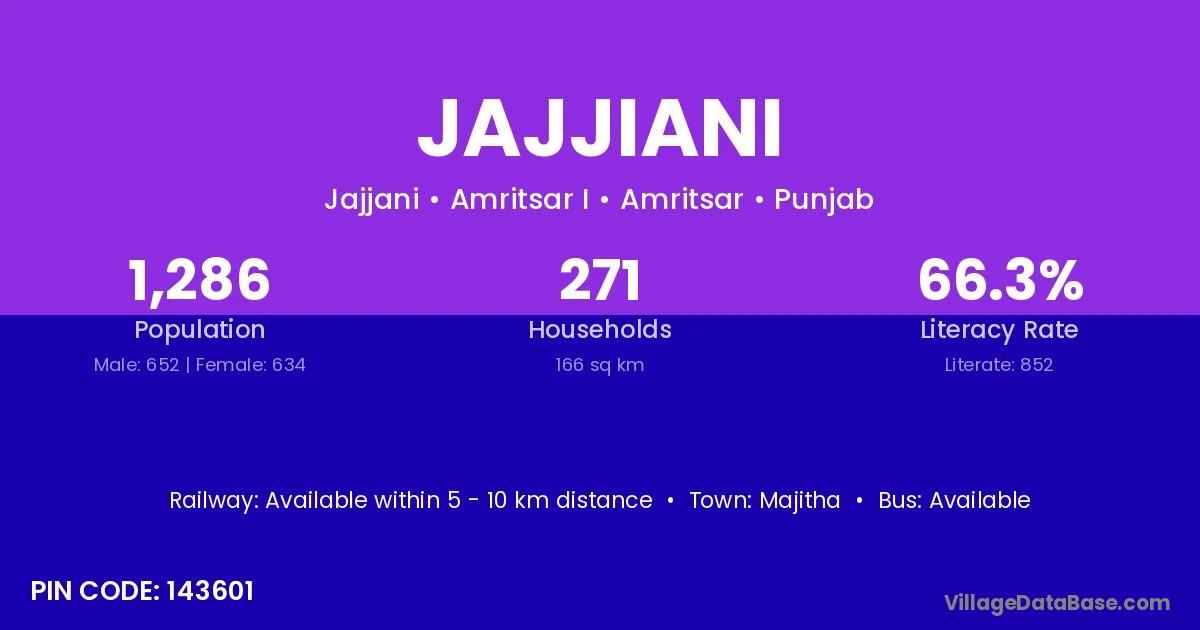 Majitha is the nearest town to Jajjiani village for major economic activities
