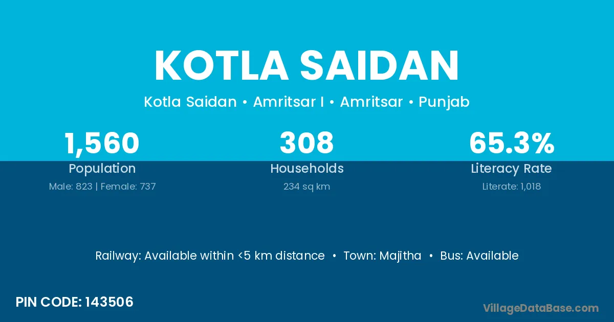 Majitha is the nearest town to Kotla Saidan village for major economic activities