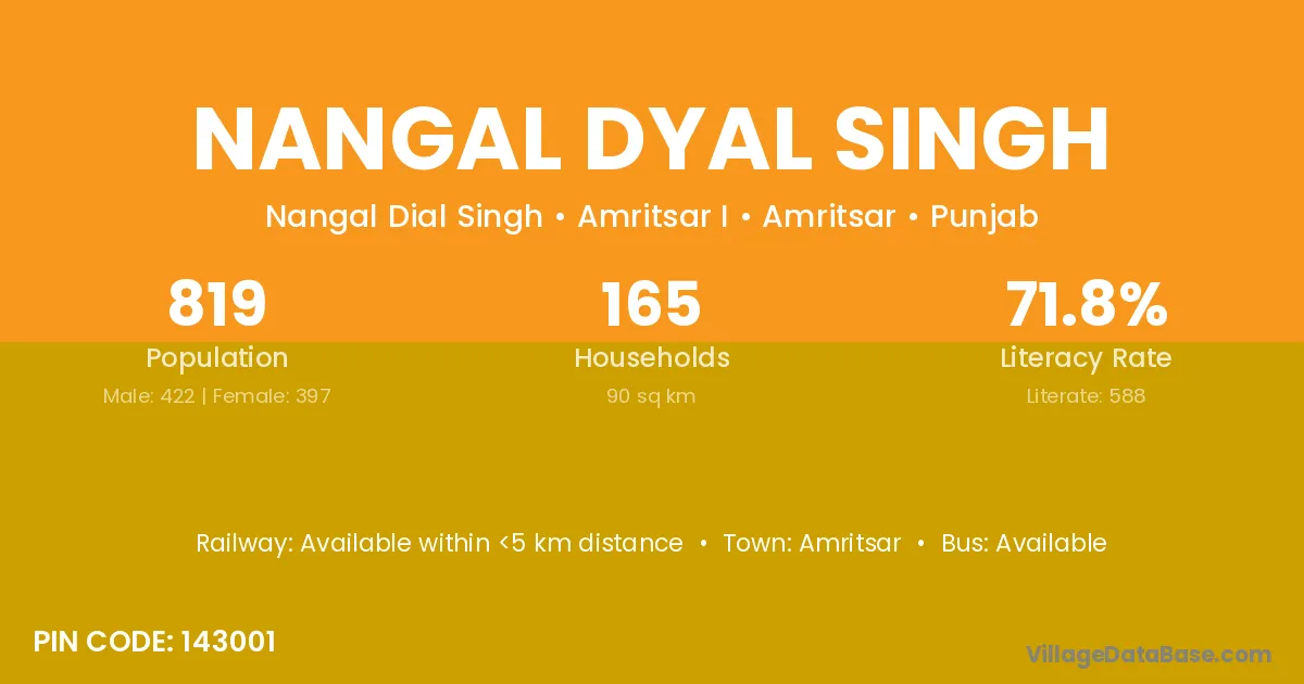 Nangal Dyal Singh village has a total population of 819 people, of which 422 are males and 397 are females.