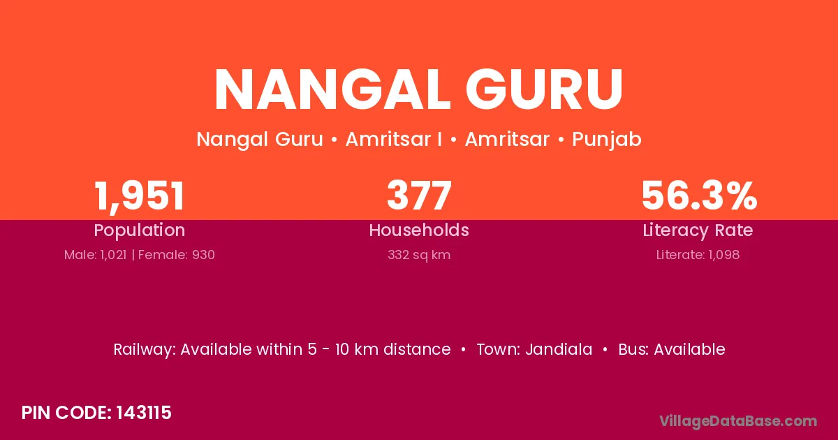 According to Census 2011 information, the village code of Nangal Guru village is 143115.