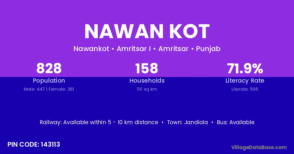 Jandiala is the nearest town to Nawan Kot village for major economic activities