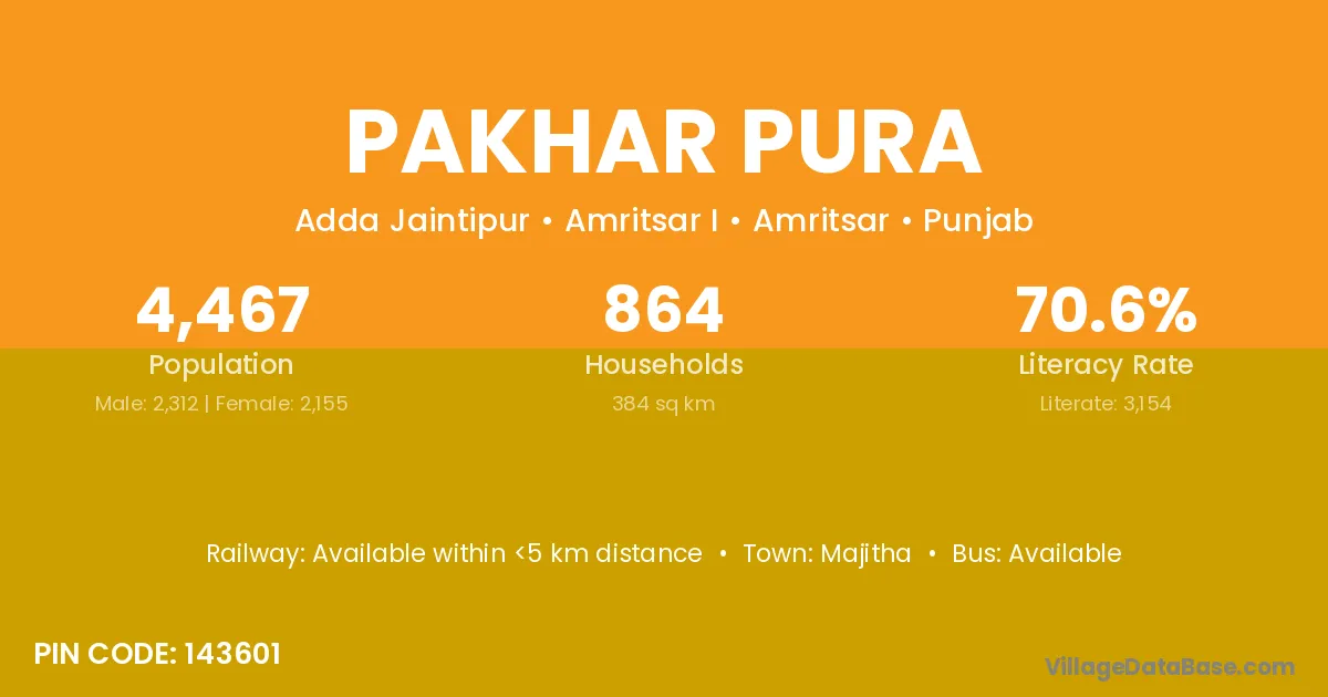 Majitha is the nearest town to Pakhar Pura village for major economic activities