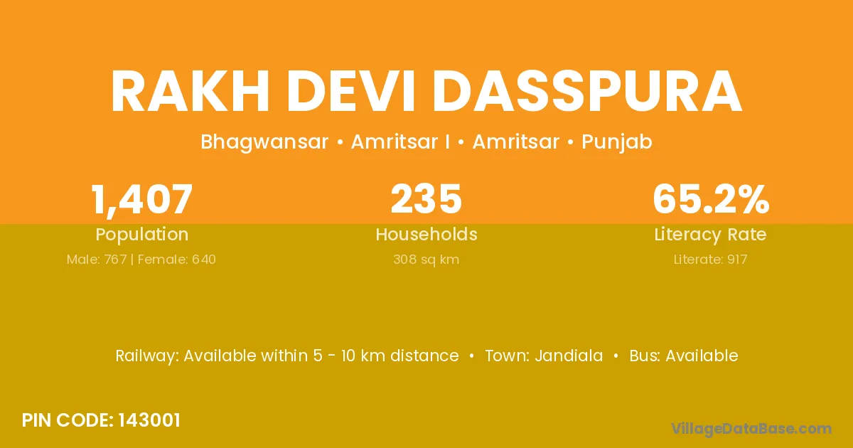 Jandiala is the nearest town to Rakh Devi Dasspura village for major economic activities