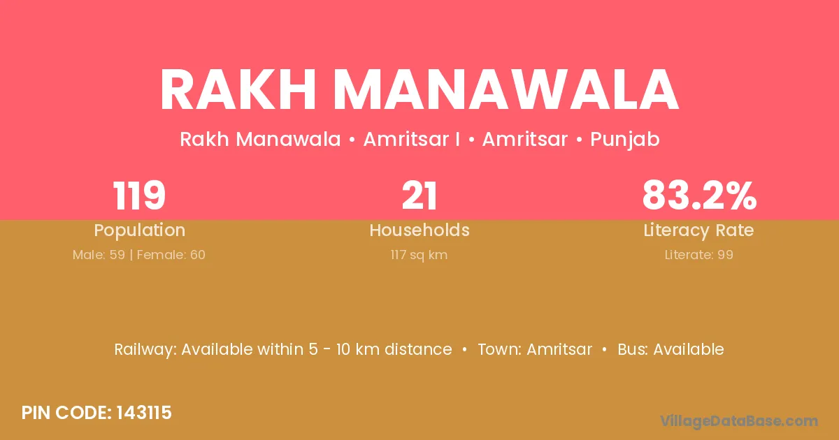 Rakh Manawala village has a total population of 119 people, of which 59 are males and 60 are females.