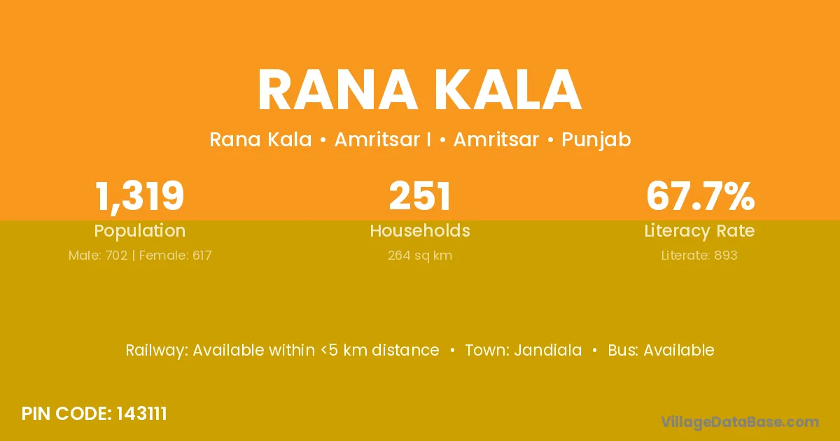 Jandiala is the nearest town to Rana Kala village for major economic activities