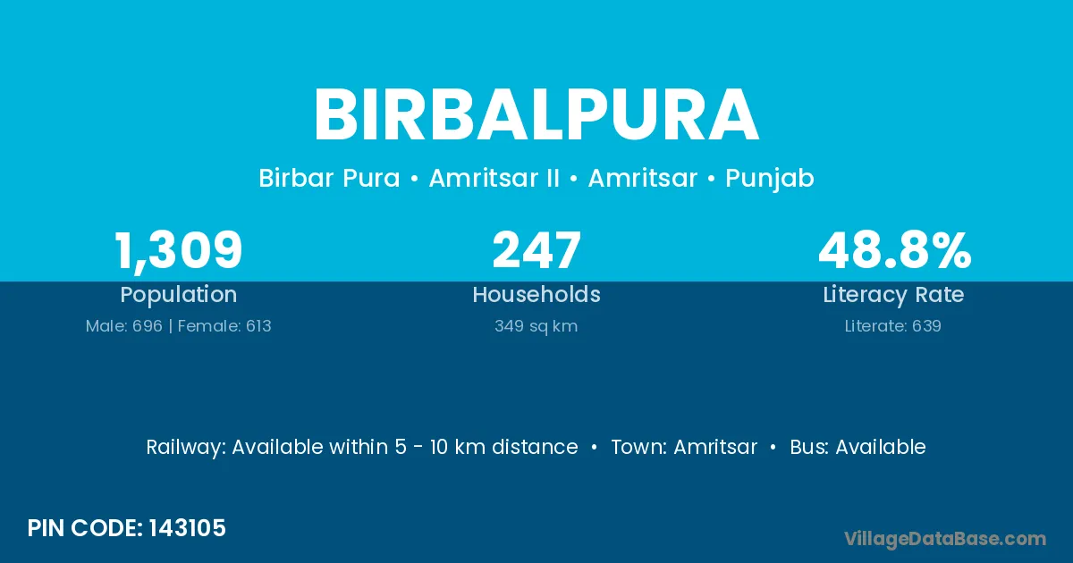 Amritsar is the nearest town to Birbalpura village for major economic activities