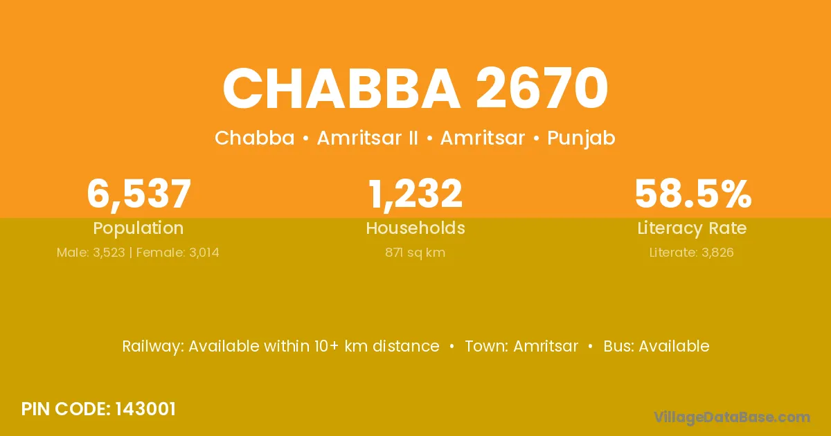 According to Census 2011 information, the village code of Chabba 2670 village is 143001.