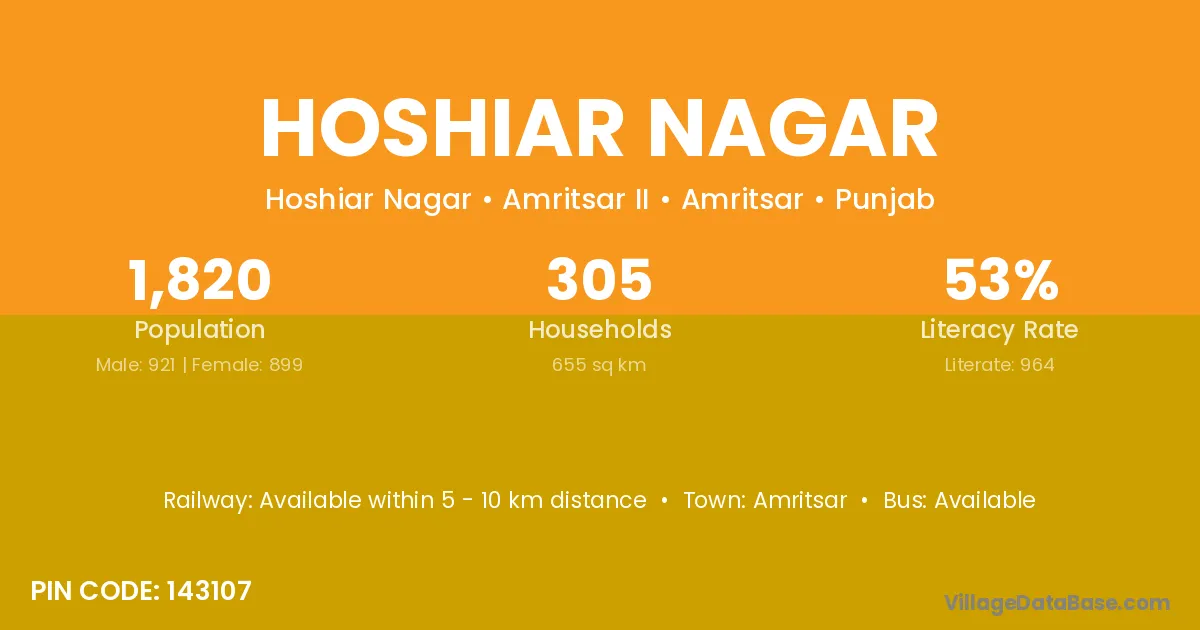 Amritsar is the nearest town to Hoshiar Nagar village for major economic activities
