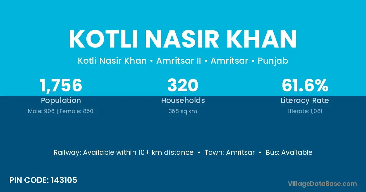 Amritsar is the nearest town to Kotli Nasir Khan village for major economic activities